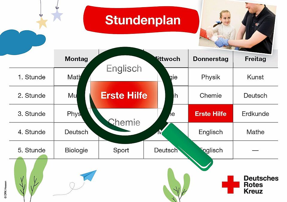 Auch der DRK Kreisverband Biedenkopf setzt seit Jahren auf Erste Hilfe Kurse an Schulen. Am 27. September startet beispielsweise eine Schulsanitäter AG in der Freiherr-vom-Stein Schule in Gladenbach. An der Europaschule vermittelt Joachim Scholz, Erste Hilfe Ausbilder des DRK Kreisverbandes Biedenkopf, den Jugendlichen das Absichern und Helfen bei Unfällen, Wundversorgung, den Umgang mit Gelenkverletzungen und Knochenbrüchen, Verbrennungen, Hitze und Kälteschäden, Verätzungen und Vergiftungen. Lebensrettende Sofortmaßnahmen wie die stabile Seitenlage und Wiederbelebung sowie zahlreiche praktische Übungsmöglichkeiten gehören ebenso zum Kurs und geben einem ein gutes Gefühl, schließlich kann man danach richtig helfen.
